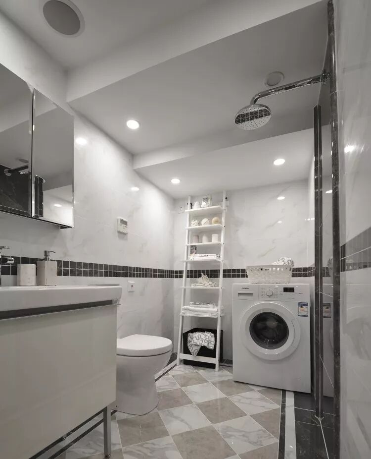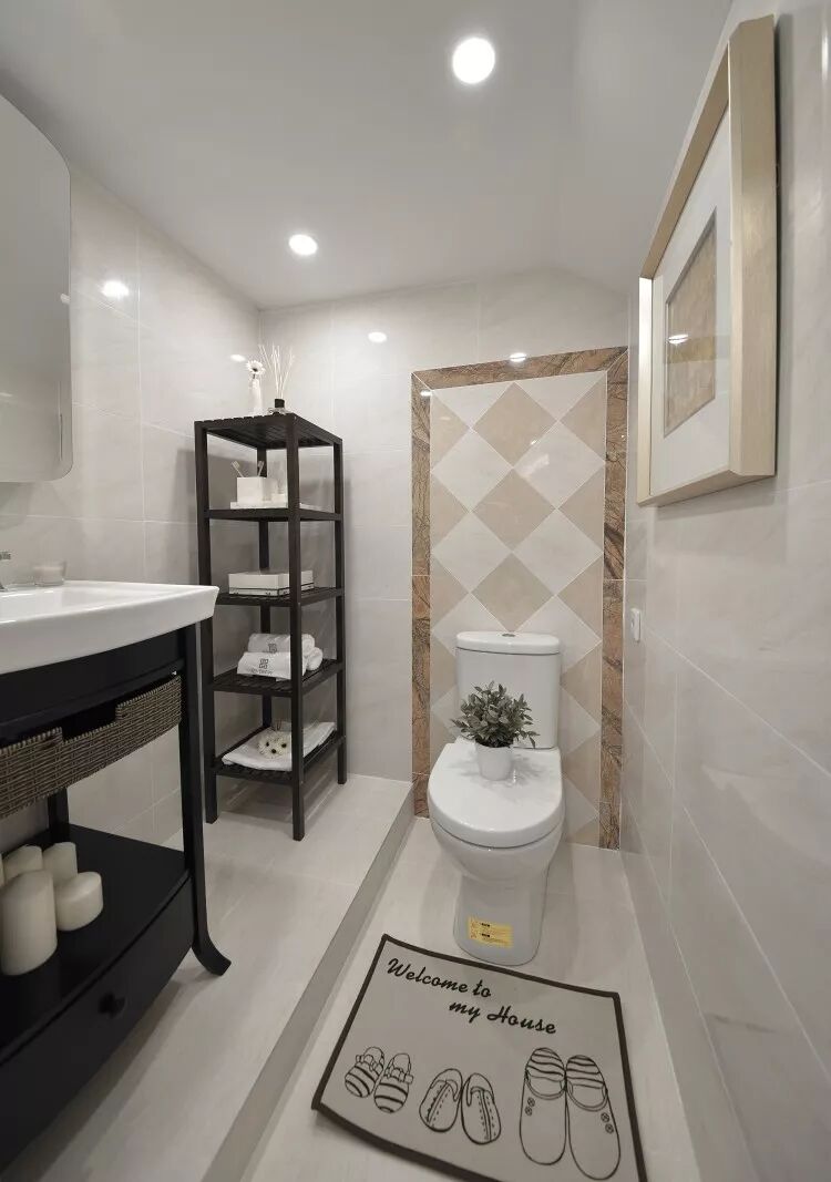 ▲墙面瓷砖做了简单的拼花,狭小的空间也有设计感。