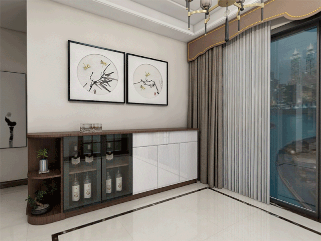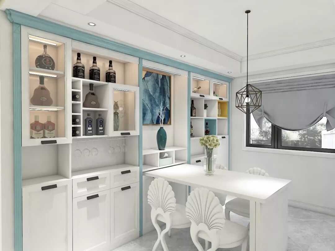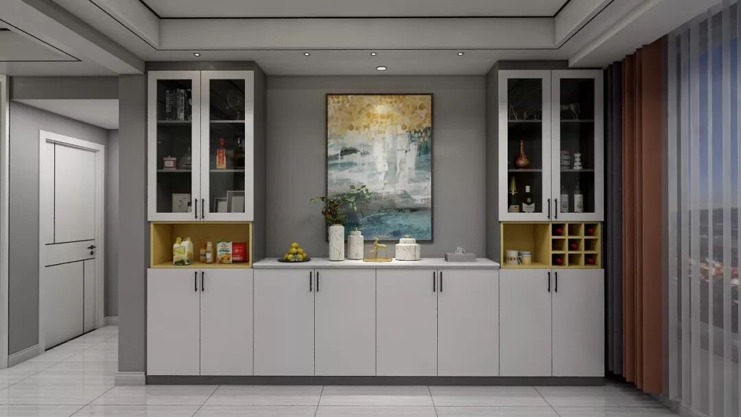 餐边柜与酒柜都是比较实用的功能,餐边柜可以方便收纳碗碟筷、也可以放置临时放汤和菜肴,