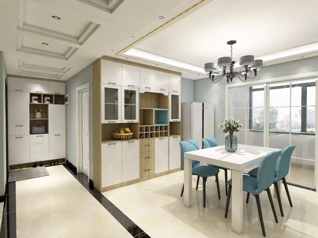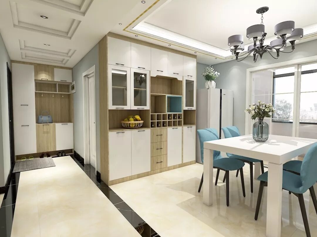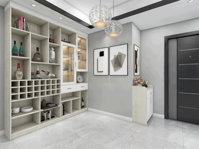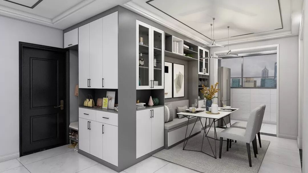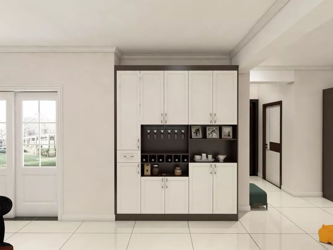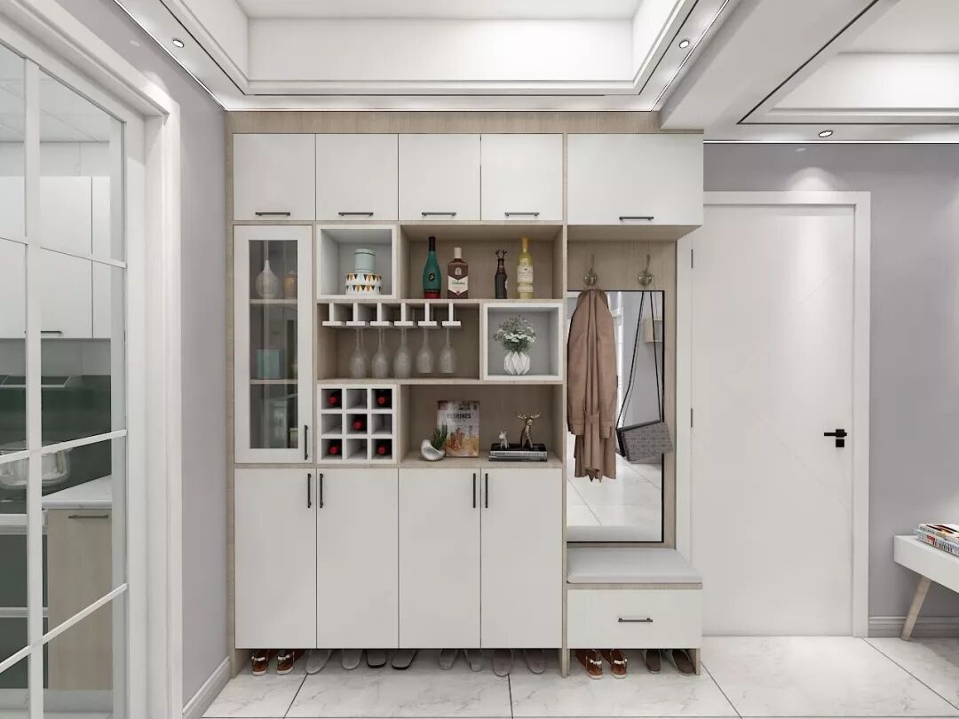 如果没有玄关,进门就是餐厅,就可以把鞋柜和餐酒柜组合在一起,一柜多用。