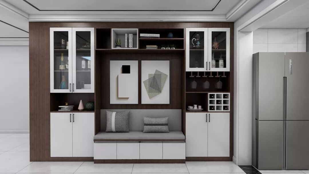 餐边柜与玄关柜一体化定制,无缝衔接,更加美观。