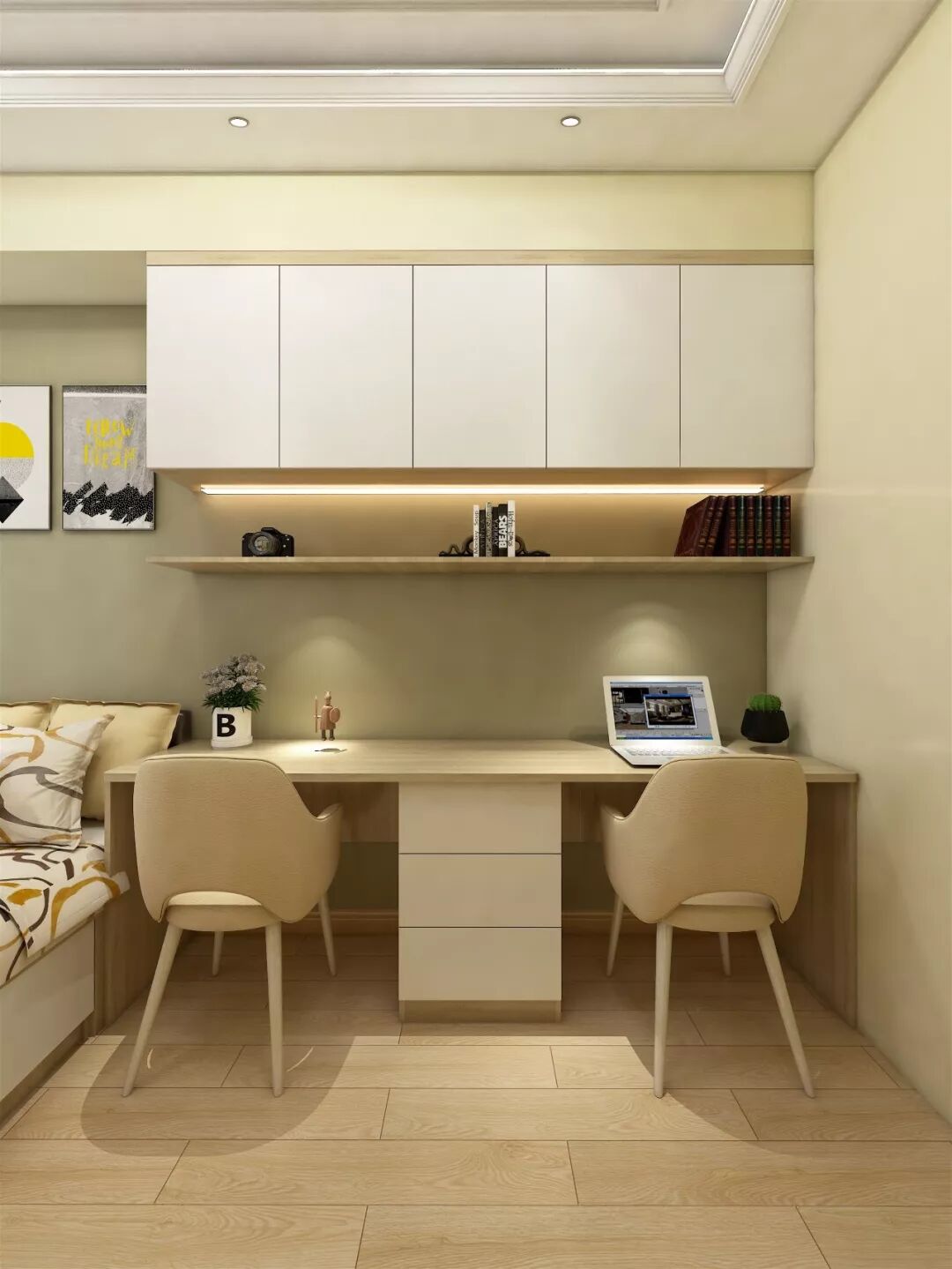 床头定制书柜+书桌