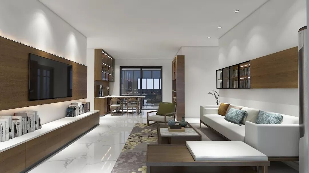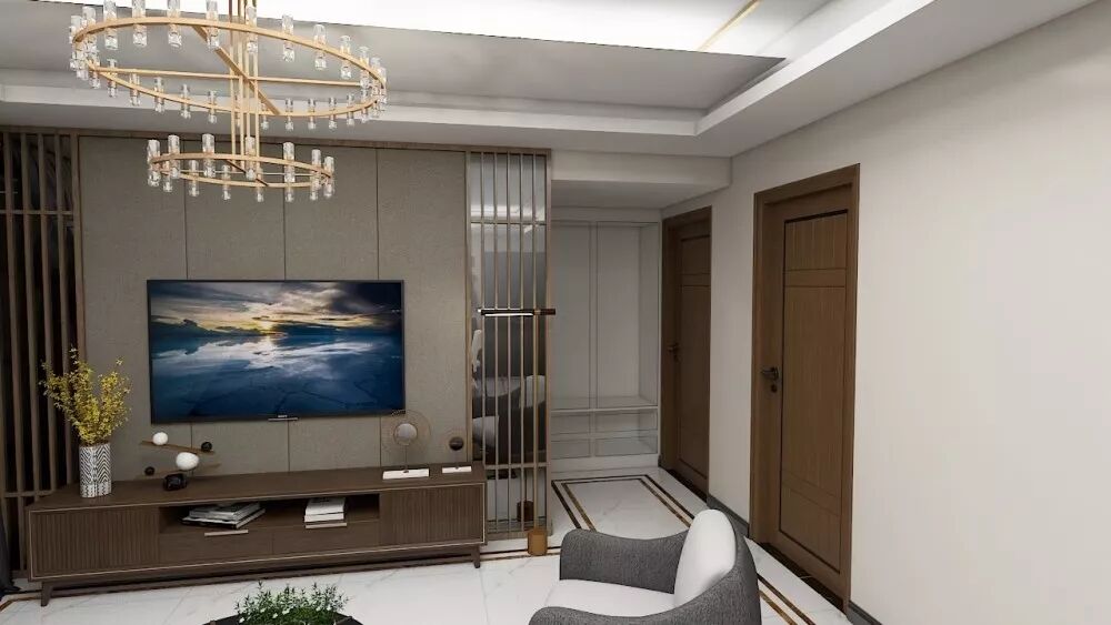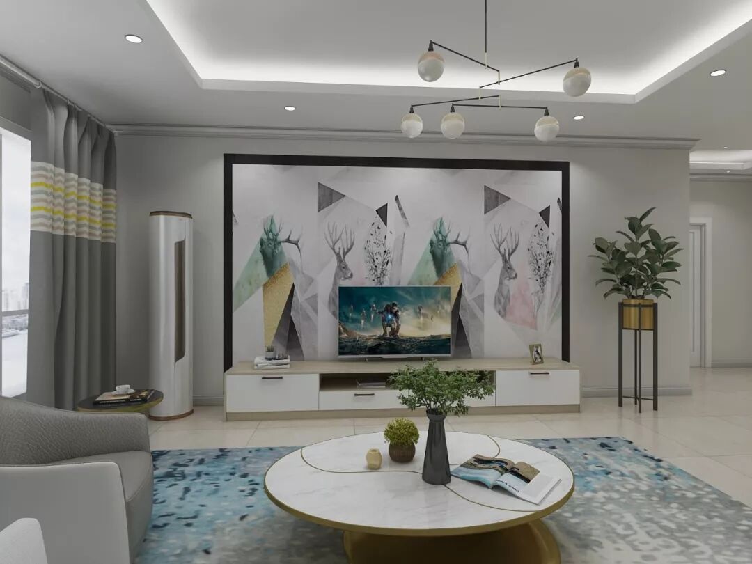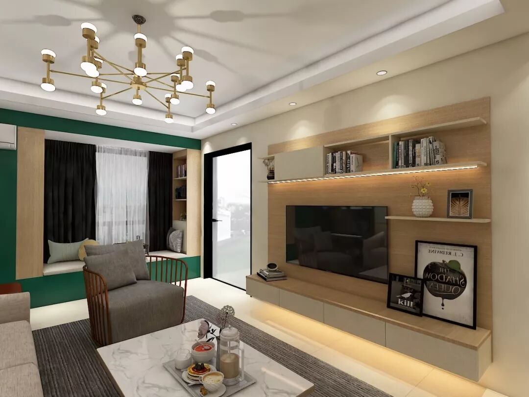 也可以以电视作为核心,搭配上吊柜,地柜和收纳柜,让设计更富有层次感,实用性更强。