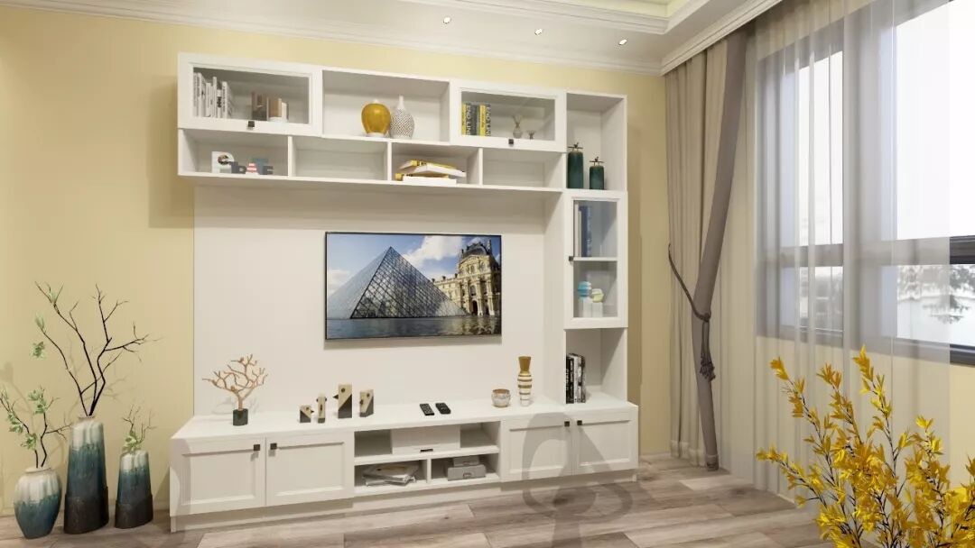 电视柜的功能非常强大,它除了放电视机,还可以当客厅背景墙,还能满足家中大量物品的收纳……