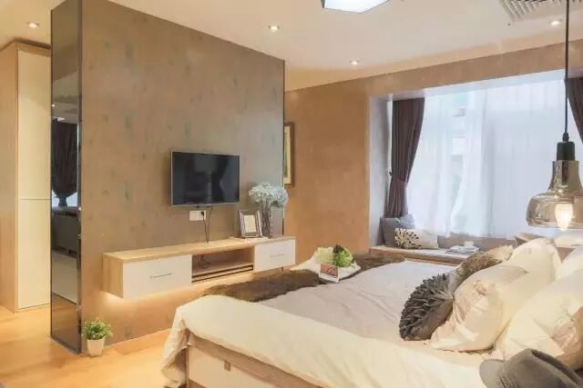 ▲这是常见的三分柜设计,可以用这种伸缩柜替代传统的床头柜,更节省空间。