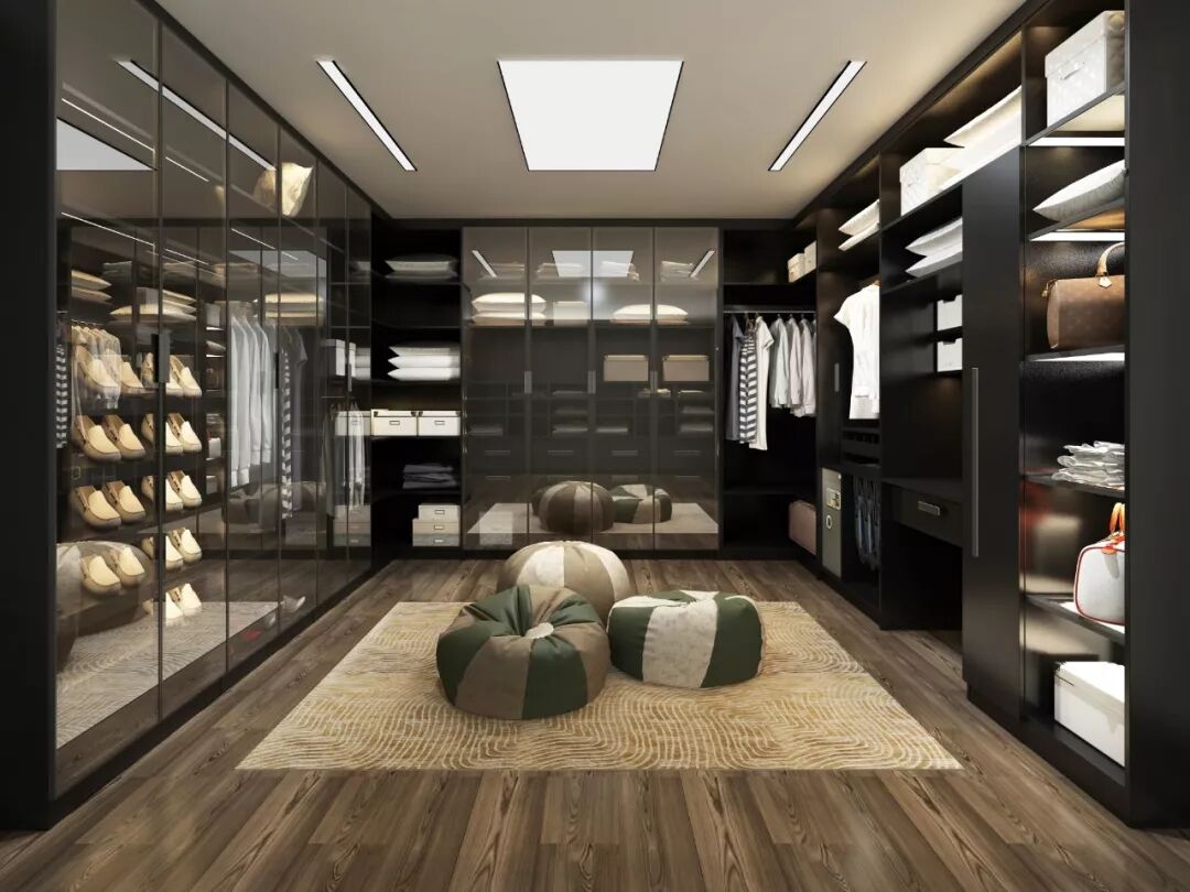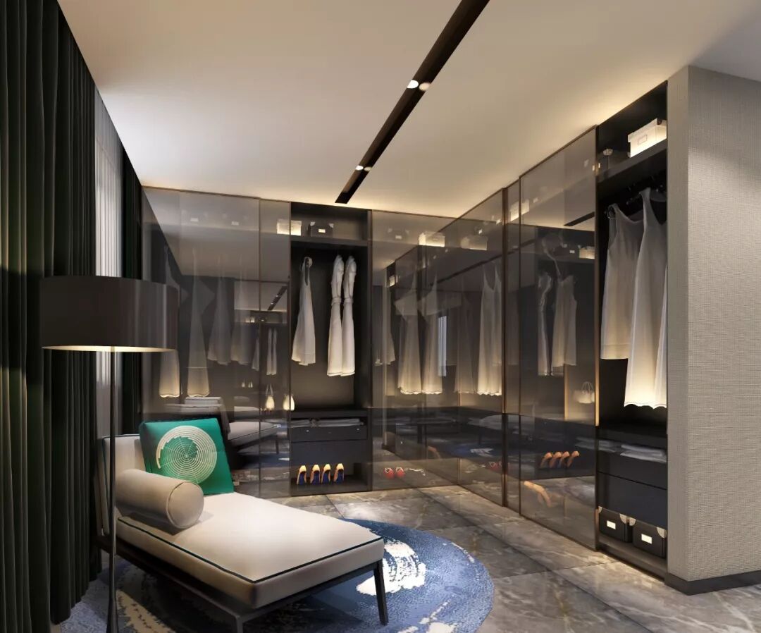 同时,质感十足的玻璃掩门,搭配极简的线条设计,在灯光的渲染下高级感立现。