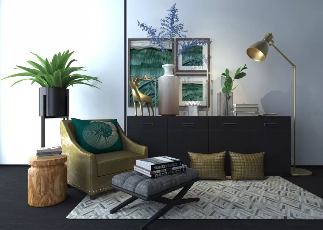 大白墙太过无趣,那就把高级灰和橄榄绿都搬进来,对比鲜明,许你一室优雅。