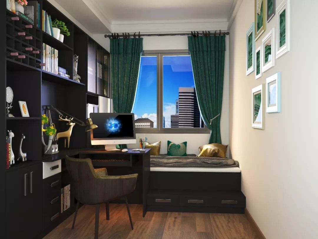 飘窗柜+书桌+书柜,打造一体式多功能书房空间,收纳升级,