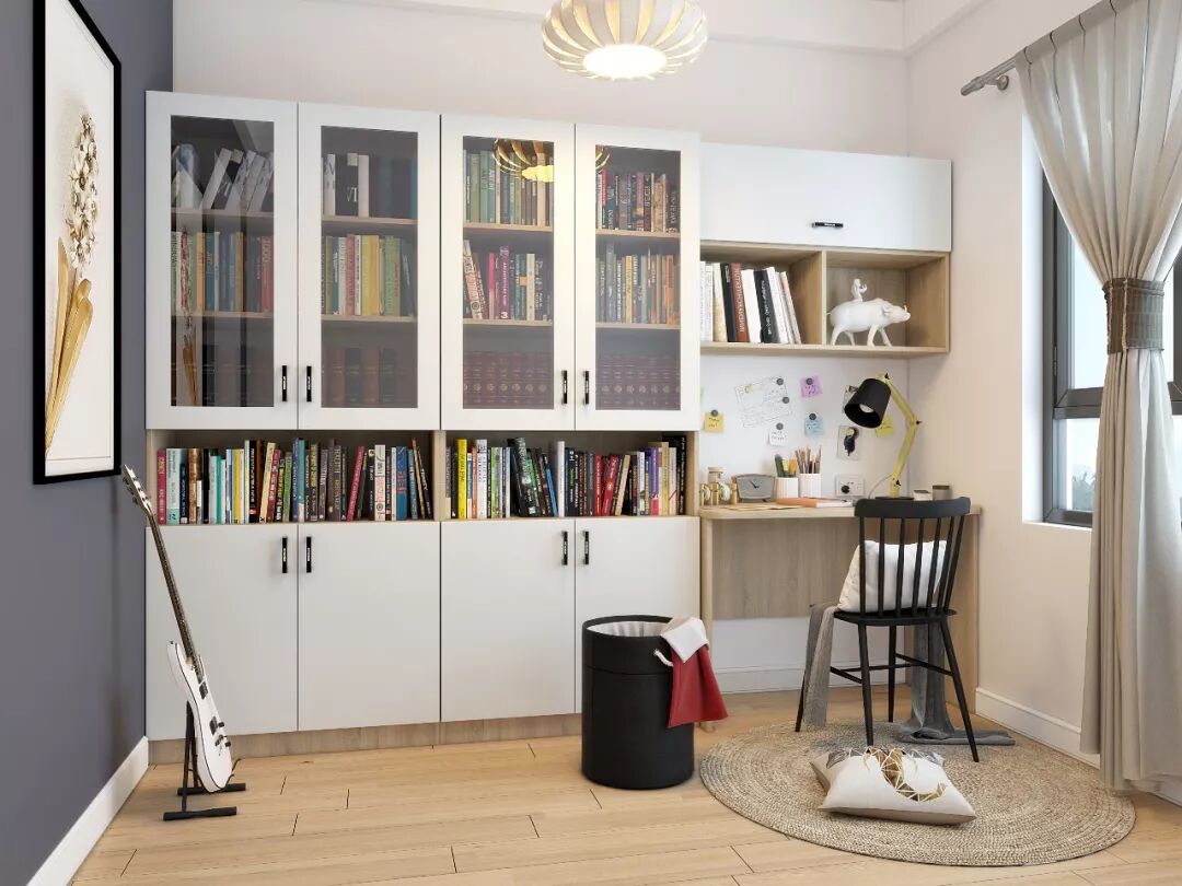 组合书桌柜,开放格和封闭柜虚实结合,空间很有层次感。