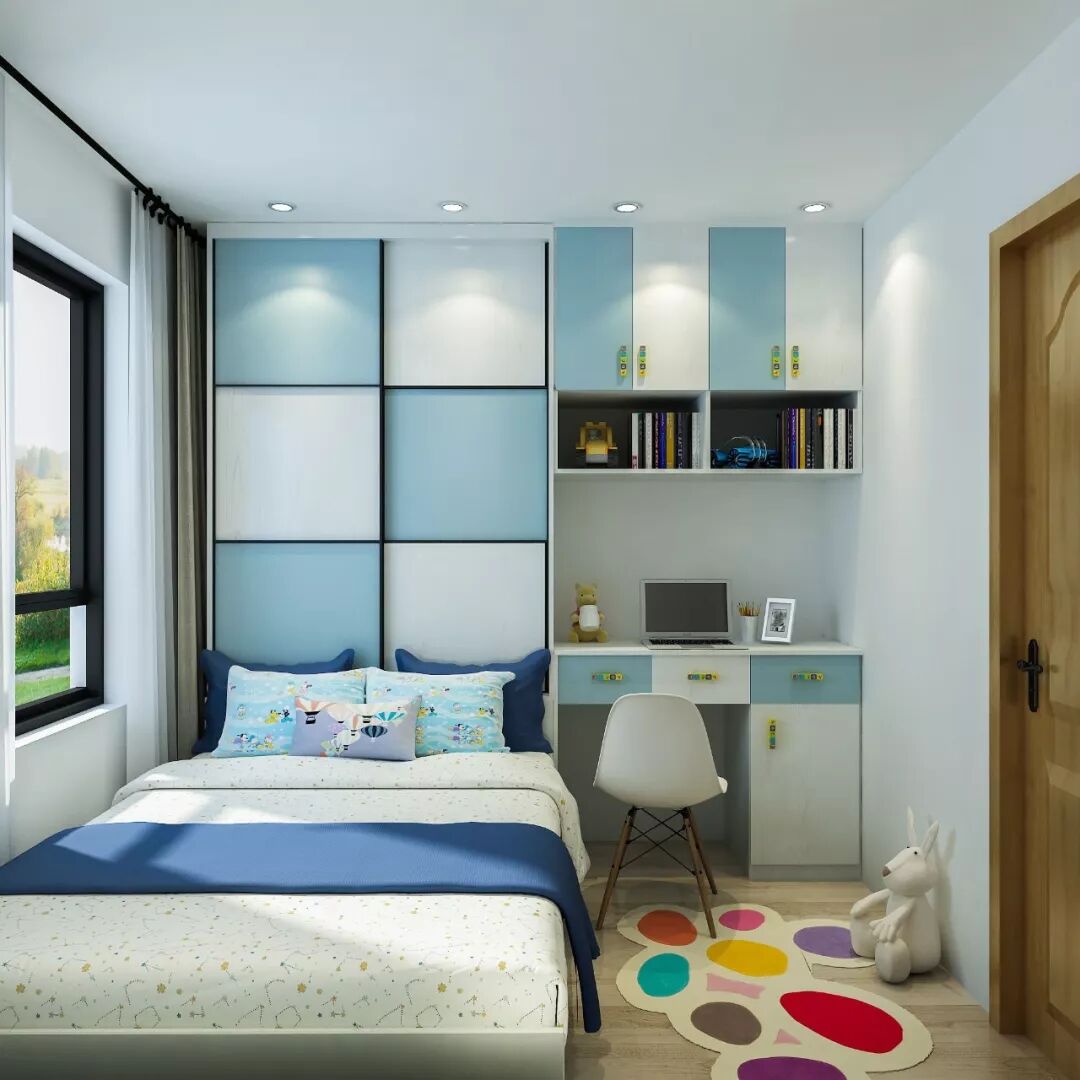 床头一体柜设计,真是不浪费1丁点空间,完美满足学习、睡觉、收纳、储物、玩耍一系列儿童成长需求。