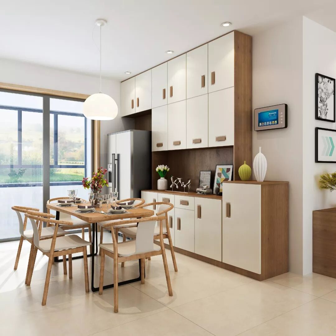 进门就是餐厅,餐边柜一柜到顶,气质杠杠的,能收纳也能展示,