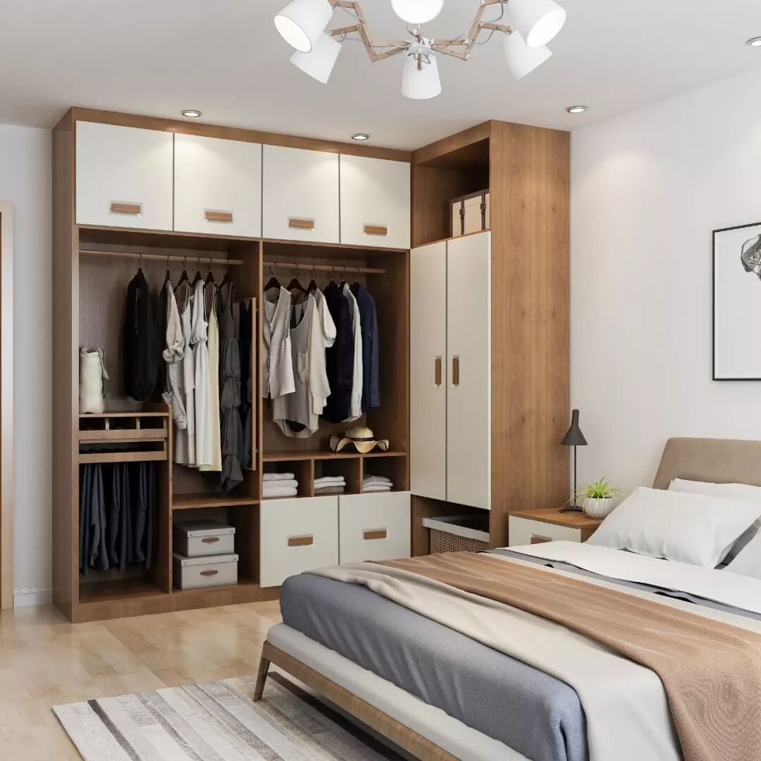 小两口的衣物都有各自的收纳阵地,拿取衣服更便捷,同时起床同时换衣再也不尴尬了。