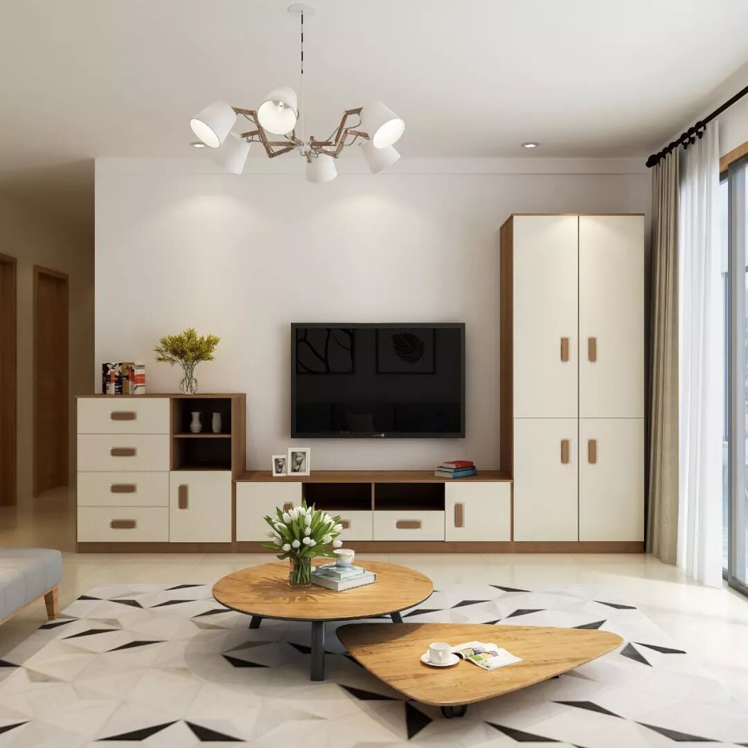 左中右三段组合电视柜,搭配原木方形把手,造型颜值一级棒!