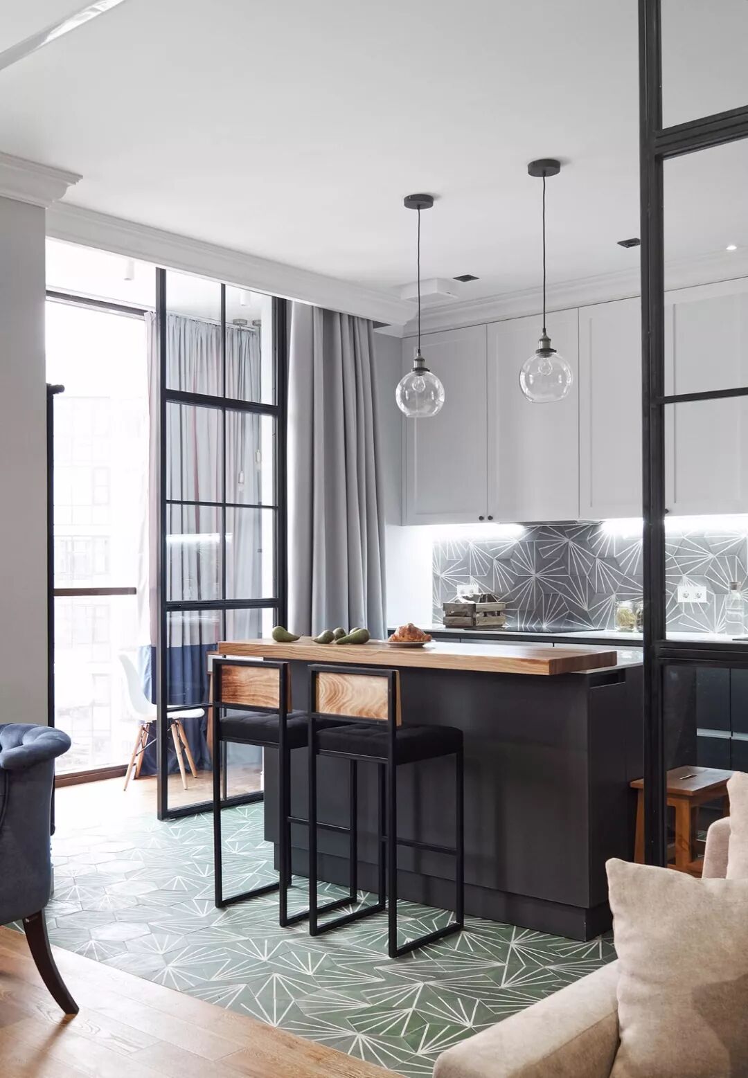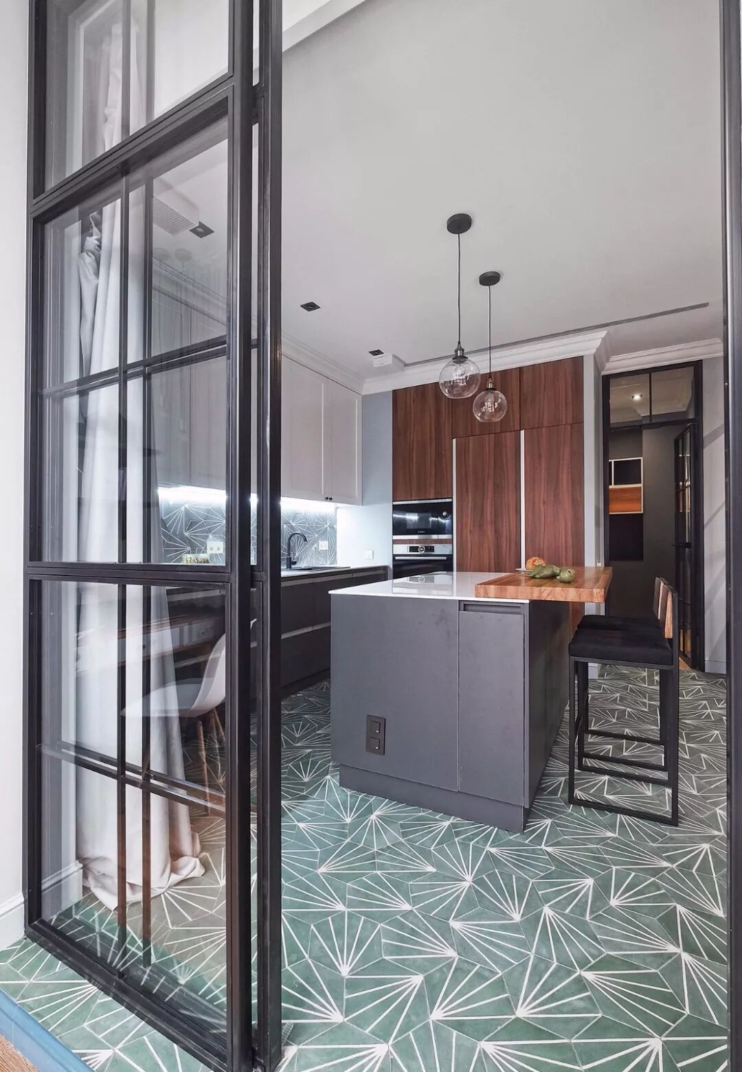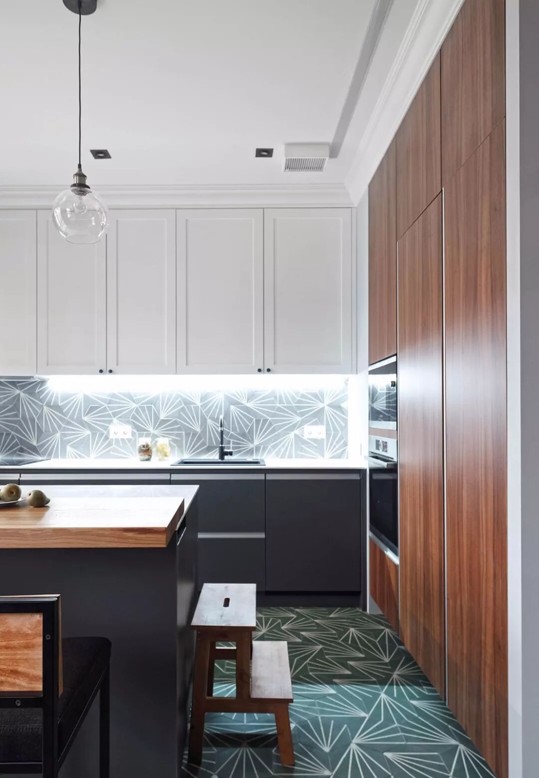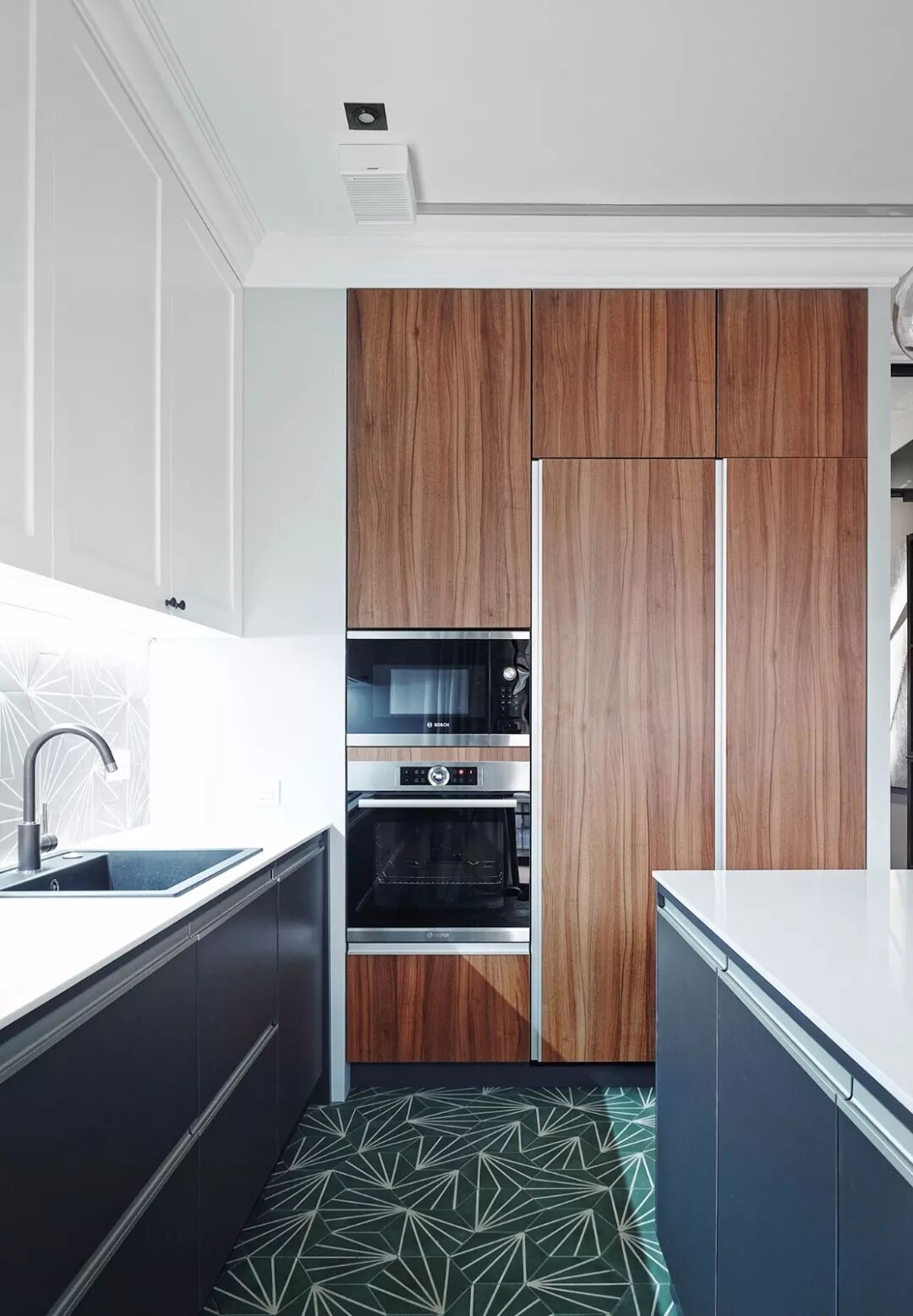 六边形的花砖,自然清新,与木纹的橱柜搭配,是健康自然的生活方式的一种体现。