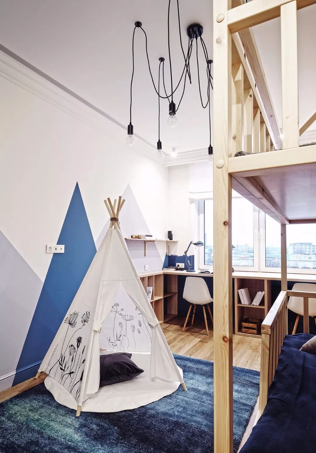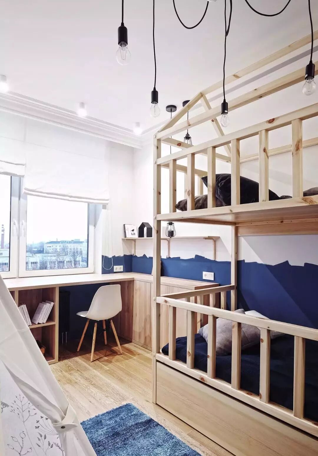 靠窗做了孩子学习的书桌,保证了充足的光线,有利于保护视力。