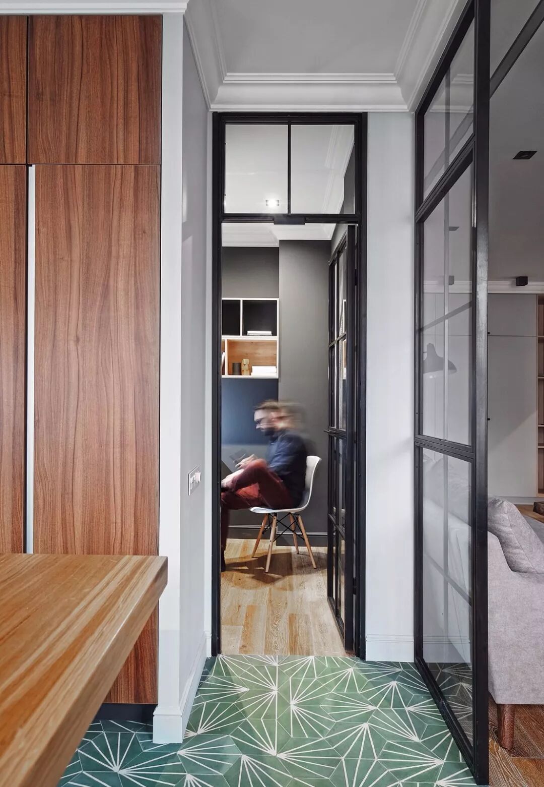 沙发另一边是通道,铺了复古文艺的小花砖,如地毯一样,温馨舒适。