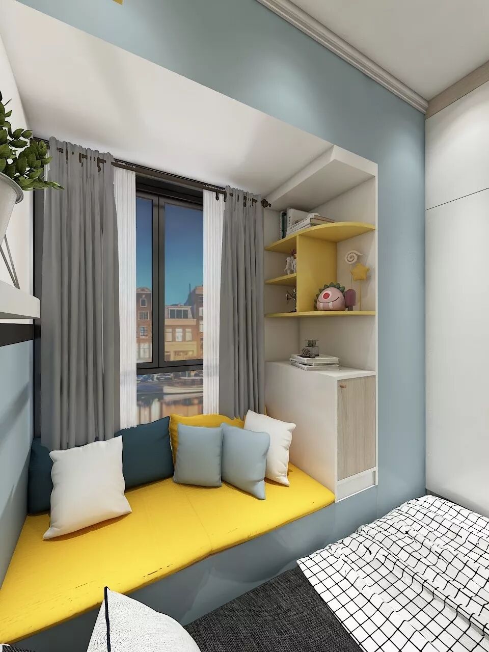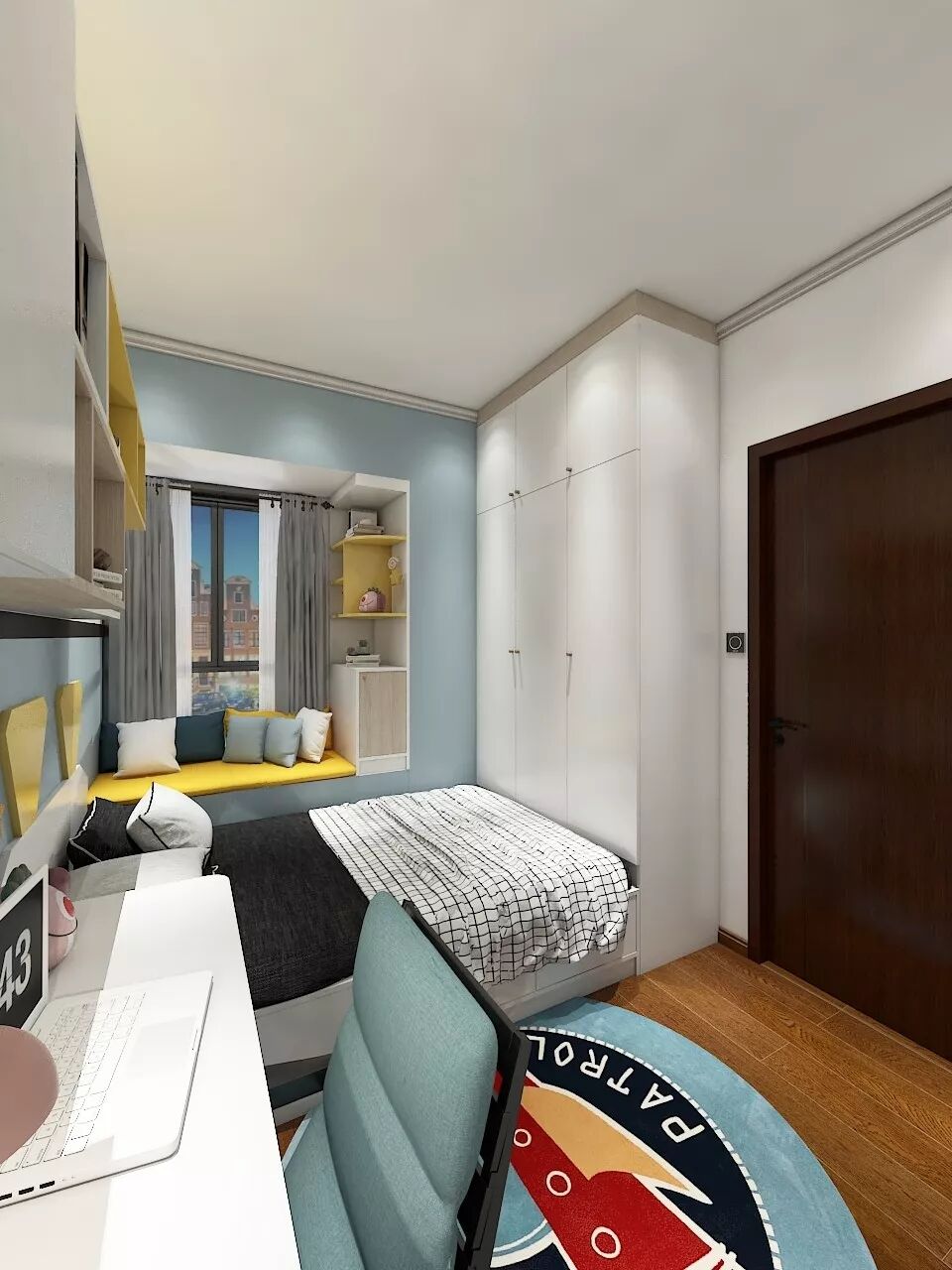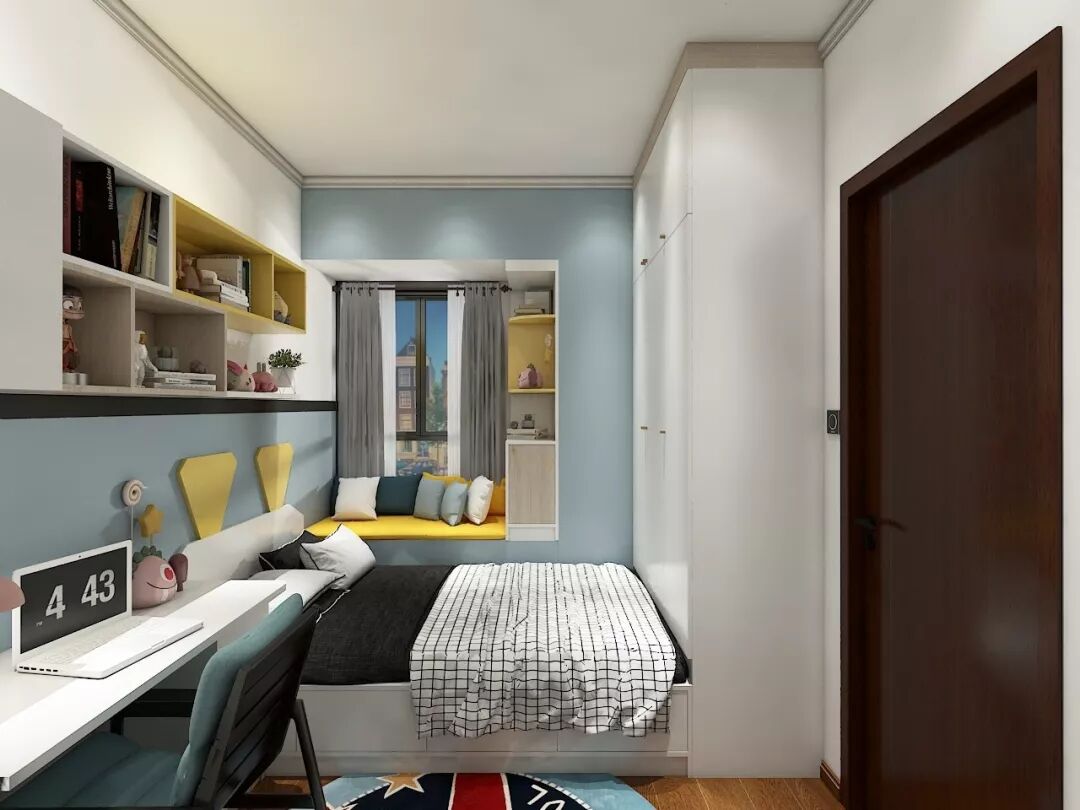 蓝黄配色很活泼,满足孩子学习、睡觉、收纳、玩乐等诸多需求。