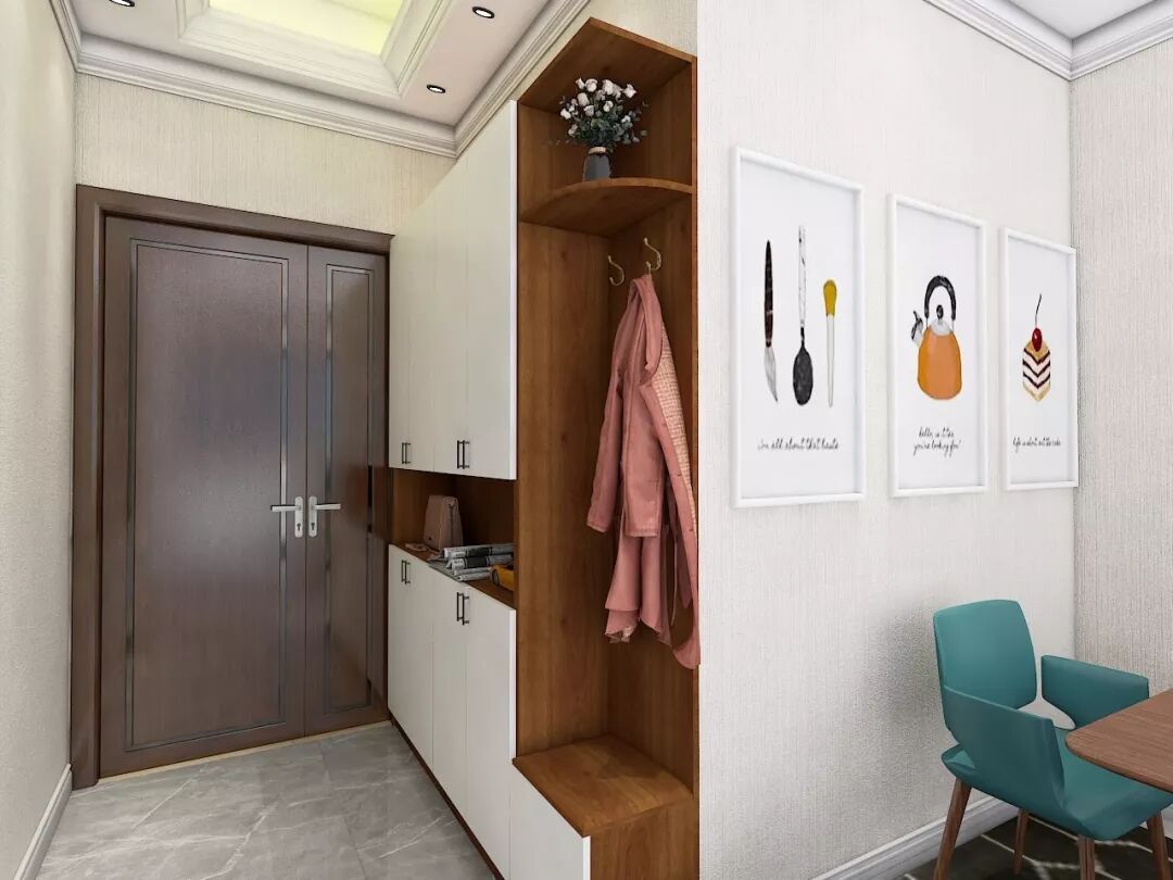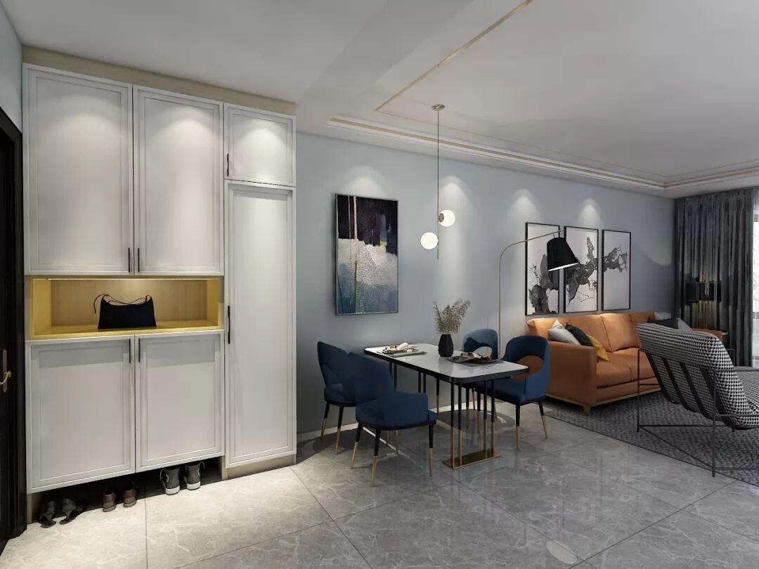 玄关鞋柜功能可以和餐边柜结合,实现一柜多用。